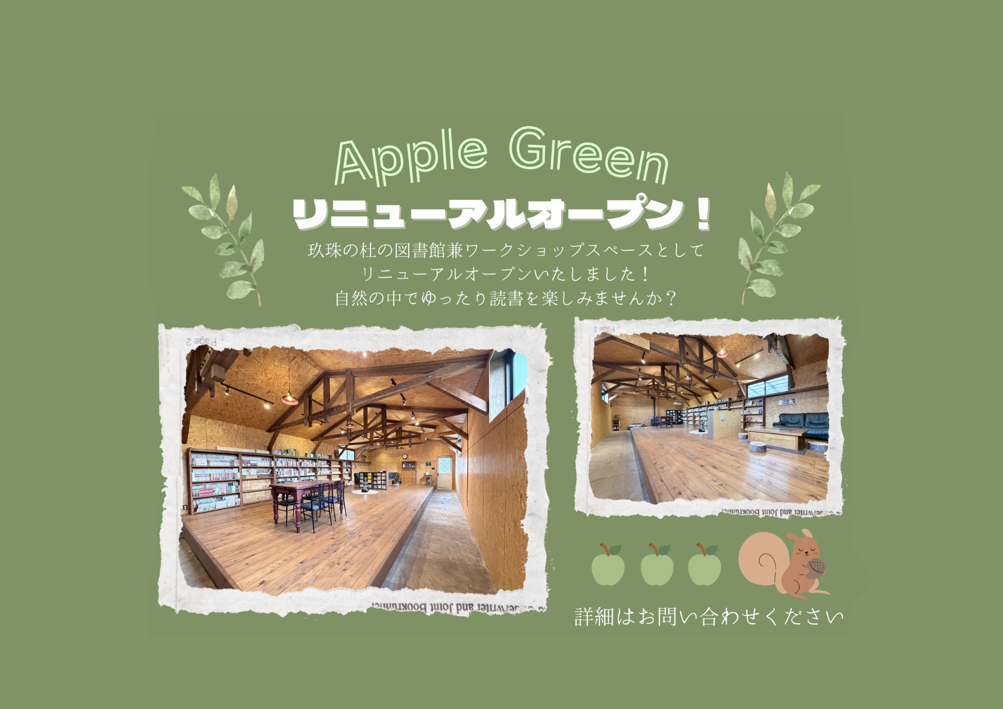 2026/01/30Apple Greenが図書館兼ワークショップスペースとしてリニューアルしました!